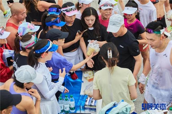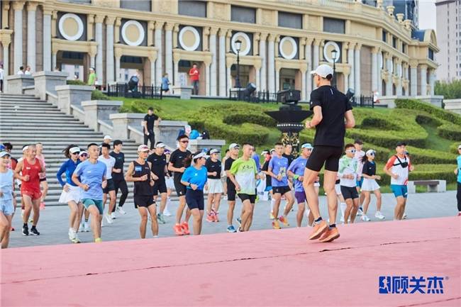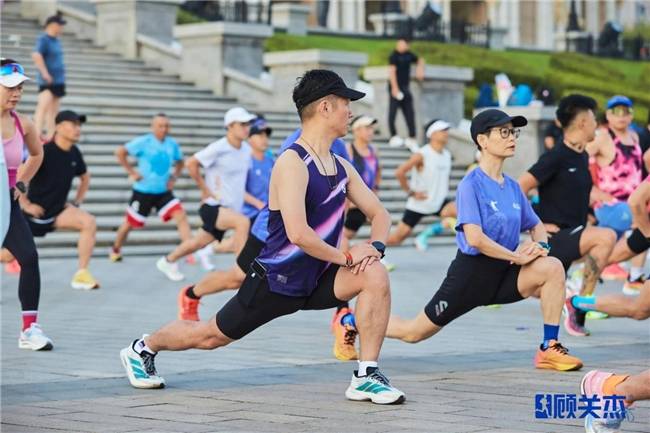 開跑前,顧關(guān)杰組織集體拉伸,并為跑者分發(fā)顧關(guān)杰氨糖霜,指導(dǎo)大家在膝關(guān)節(jié)、腳踝等易受傷部位涂抹。由于北方晝夜溫差大,關(guān)節(jié)容易受涼僵硬,專業(yè)養(yǎng)護(hù)搭配高抬腿、弓步走等動作,可有效預(yù)防運動損傷。這條路線,讓跑者在“江風(fēng)穿廊過,音符伴步頻”的意境中沉浸。其循序漸進(jìn)的節(jié)奏,能引導(dǎo)身體精準(zhǔn)找到發(fā)力狀態(tài)。在開闊的景致中,每一次深呼吸,都是為賽前狀態(tài)“充能”的最佳方式。開跑前的集體拉伸環(huán)節(jié),顧關(guān)杰為大家分發(fā)了顧關(guān)杰氨糖霜進(jìn)行專業(yè)養(yǎng)護(hù) —— 北方晝夜溫差大,關(guān)節(jié)易因受涼發(fā)緊,大家在膝關(guān)節(jié)、腳踝等部位仔細(xì)涂抹,配合高抬腿、弓步走等科學(xué)動作,能更好地防止運動損傷。